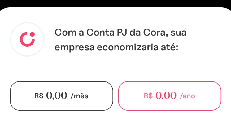 - Passo 2Abra sua conta PJ gratuita na Cora. O cadastro é rápido e sem burocracia.